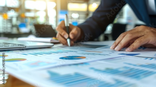 Businessperson Analyzing Financial Data with Charts and Graphs