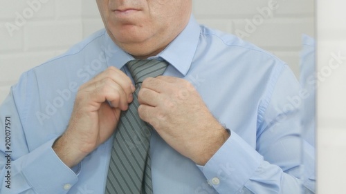 Businessperson Image Reflected in the Bathroom Mirror Making a Tie Knot