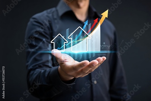 Businessperson Presenting Projected Real Estate Growth Hand displaying