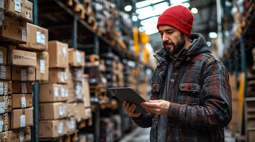 Businessperson Scanning Shipment Boxes with Tablet in Warehouse for Wholesale Distribution