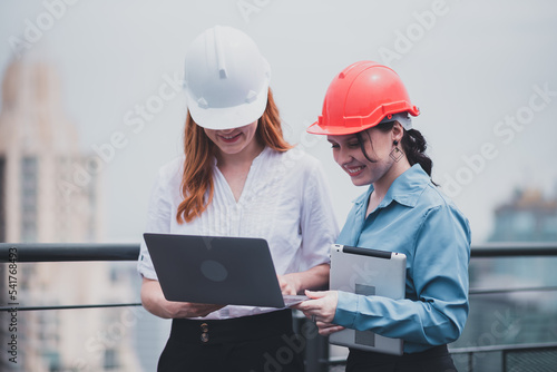 Businesswoman chatting with colleagues to make the company successful.Architects are confident in the construction of architecture.Girls talk teamwork with colleagues for success.