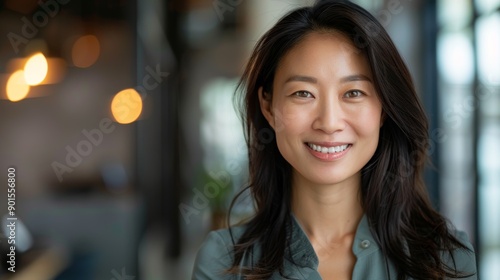 Businesswoman, face, success, mockup space, vision, and career aspirations. Staff smiling, leadership, and corporate lawyer at Japanese, Asian, and growing legal firm