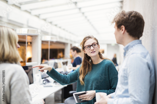 Businesswoman having discussion with colleagues in office