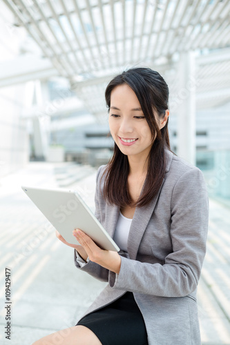 Businesswoman in smart casual using digital tablet