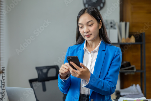 Businesswoman is talking on the phone with a partner, Businesswoman is sitting and working in the office, An entrepreneur is talking on the phone with a company customer, office idea.