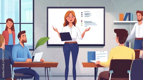 Businesswoman Leading a Team Meeting Presentation in Modern Office Space