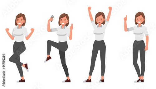 Businesswoman working in office character vector design. Presentation in various action.
