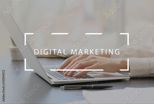 Businesswoman working on laptop in office, closeup. Concept of digital marketing