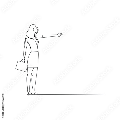 Businesswomen pointing finger at something. Business target management concept and illustration. Hand drawn style Continuous line drawing design