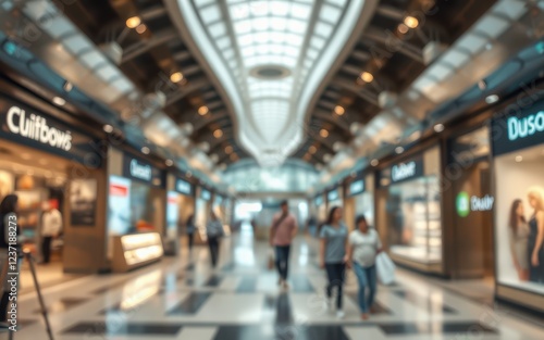 Busy indoor shopping mall with shoppers strolling along stylish stores during the day