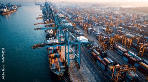 Busy port with ships and containers