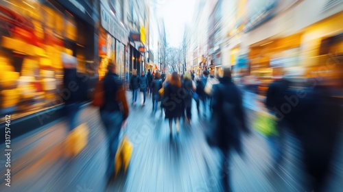 Busy shopping area filled with pedestrians and vibrant storefronts during peak retail hours