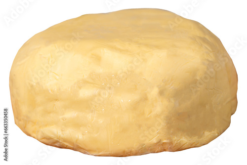 Butter in a copper plate. Organic fresh cow butter isolated on white background. Close up