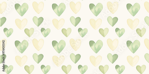 buttercream and sage color hearts seamless pattern, clean surface texture, white background