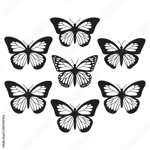 Butterflies silhouette, Vector illustration of butterfly on white background.