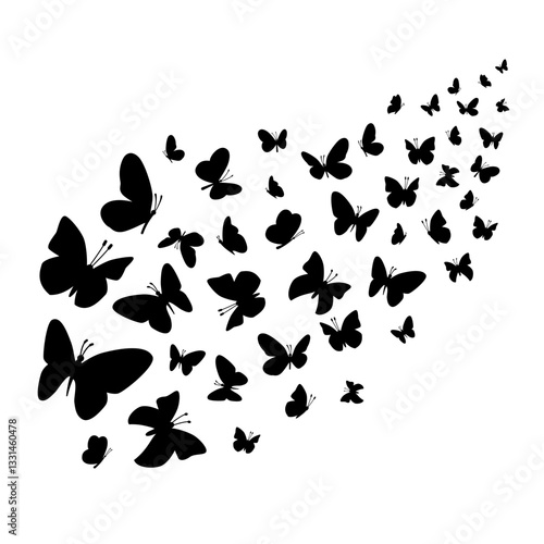 Butterfly flock vector illustration. Butterflies silhouette flying on white background.