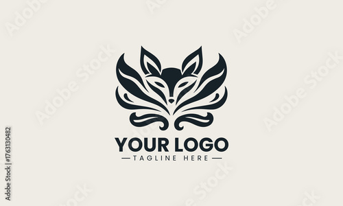 Butterfly fox logo combining animal and insect elements in minimalist vector design illustration