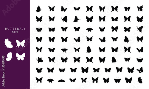 Butterfly silhouettes various butterfly species vector art illustration