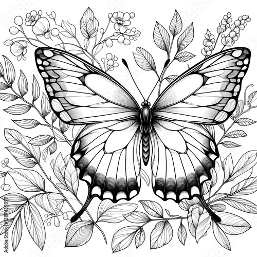 Butterfly The Gassed Aporia crataegi - linear drawing, ideal for coloring.