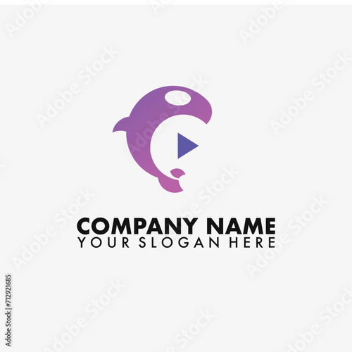 Button play, orca whale, vector logo in modern style