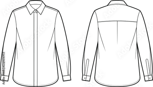 Button up shirt vector, fashion flat sketch, men’s shirt illustration, apparel design template, clothing mockup, garment technical drawing, long sleeve shirt, vector clipart