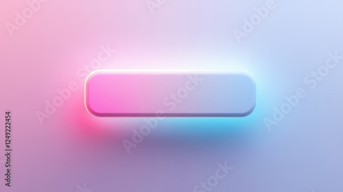 Button with Neon Glow. A 3D render of a blank button casting a soft pink and blue neon glow. Ideal for UI and web design