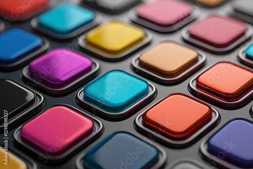 Buttons for mobile applications showcased in vibrant colors with a glossy finish