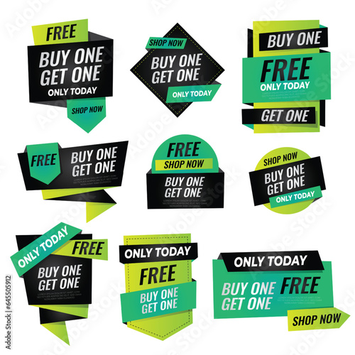 Buy one get one free. Set of super sale banners, sticker. special offer.