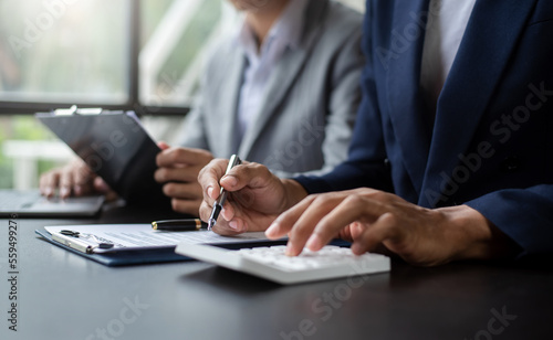 Buying a home or insurance deal, an insurance agent pointing a pen to those interested in renting a house, a contract, signing an Home buying agreement