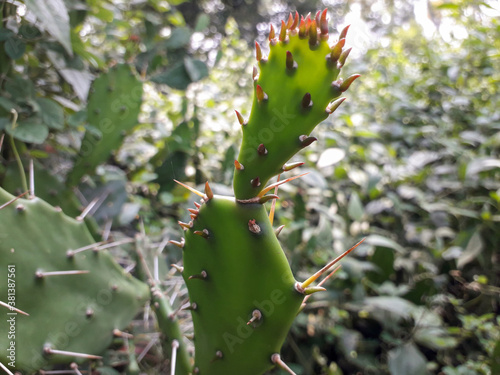 cactus plant in the Indian forest, Opuntia monacantha plant in wild, wild cactus plant.