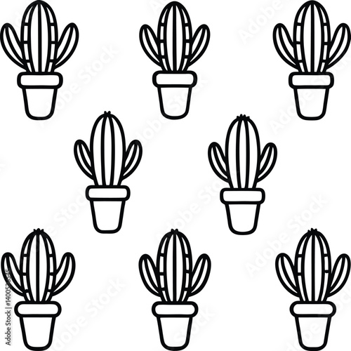 Cactus Repeat Outline Icon Line Art Drawing Vector | Desert, Nature & Plant Pattern Line Art