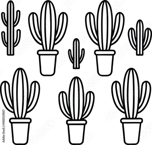 Cactus Repeat Outline Icon Line Art Drawing Vector | Desert, Nature & Plant Pattern Line Art