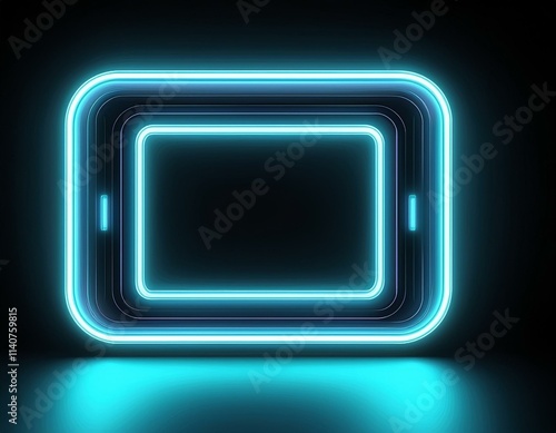 cadre, base graphique en néon bleu avec zone d'écriture sur fond noir en ia.