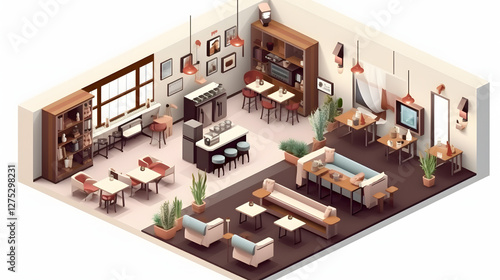 Cafe Room interior design isometric 3D