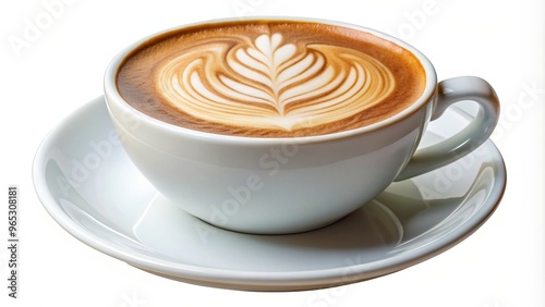caffeine, isolated, ceramic, hot beverage, close-up, foam, breakfast, latte art, refreshment, coffee shop, White ceramic cup of cappuccino with latte art isolated over white background