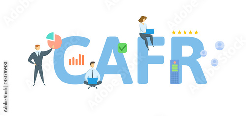 CAFR, Comprehensive Annual Financial Report. Concept with keyword, people and icons. Flat vector illustration. Isolated on white.