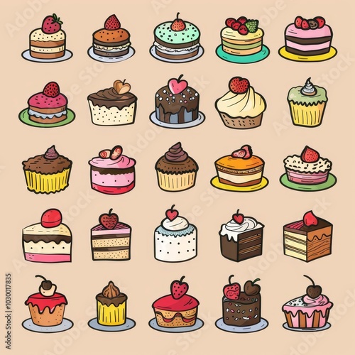Cakes icon set, desserts, cupcakes symbols, sweets sign, bakery design elements, bakery pastry, biscuits