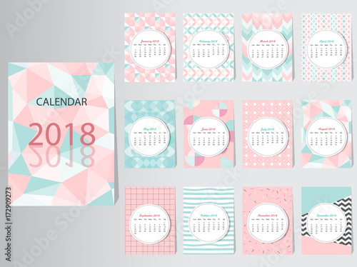 Calendar 2016 Vector Design Template with abstract pattern,Set of 12 Months,vector illustrations.