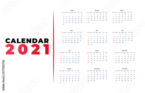 Calendar 2021 template layout, 12 months yearly calendar set in 2021, red background, business brochure flyer, print media, advertisement, Simple design template, vector illustration