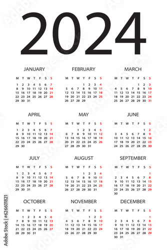 Calendar 2024 - illustration. Monday to Sunday