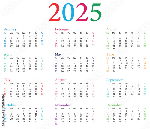 Calendar 2025 Vector Design. Wall calendar 2025 template, print media. Calendar 2025 year vector illustration