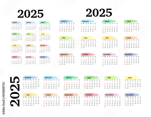 Calendar for 2025 isolated on a white background