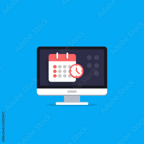 Calendar icon on screen computer. Schedule, appointment, important date concept. Vector illustration in flat style.
