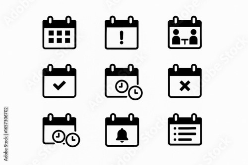 Calendar icon set vector flat symbols meetings deadlines schedule