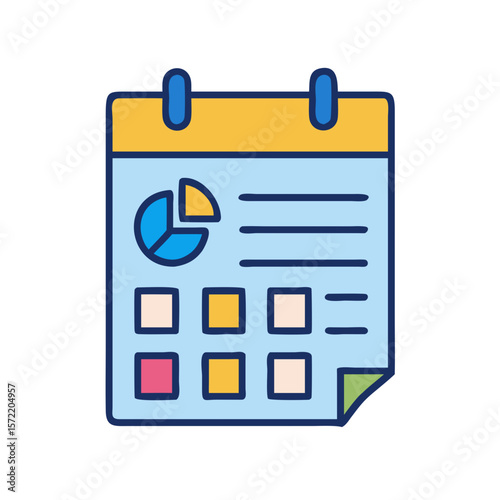 Calendar icon showing schedule and statistics in flat style