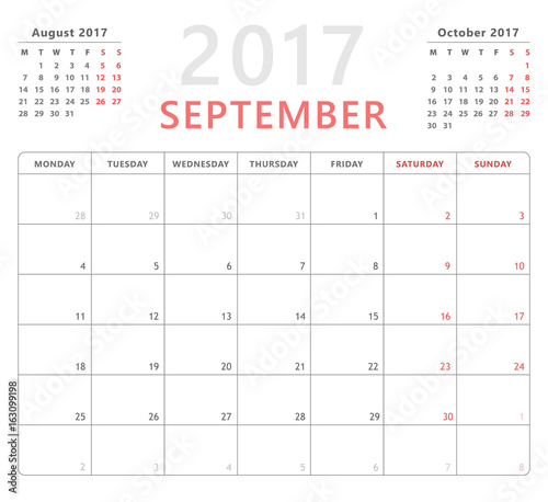 calendar planner for september2017 starts monday, vector calendar design 2017 year
