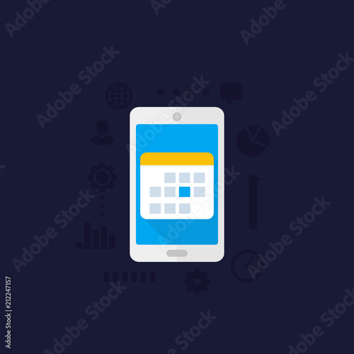 calendar, schedule in smartphone, vector icon