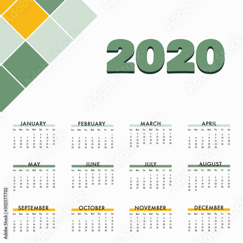 Calendar template for 2020 year. Planner diary in a minimalist style. Corporate and business calendar.