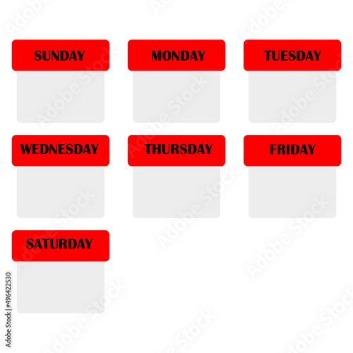Calendar web buttons - Days of the week. The days of week badges. Set of Every Day of a Week