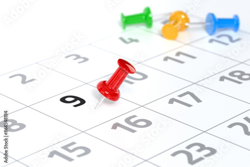 Calendar with Red Pushpin. Date Concept Using White Background and Simple Composition. 3d Rendering